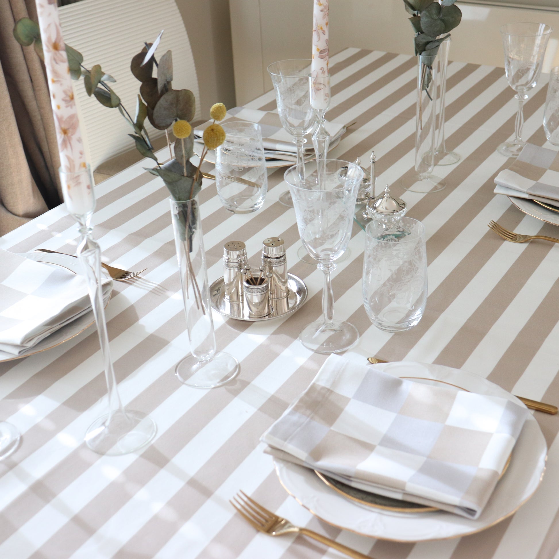Masa örtüleri, altın ve gümüş işlemeleriyle yemek organizasyonlarınıza şık bir dokunuş katıyor. Masalara değer katmak amacıyla titizlikle üretilen masa örtüleri, BERRY.LEYLA koleksiyonundaki uyumlu ürünlerle birlikte sergilendiğinde muhteşem bir fon oluşturuyor.