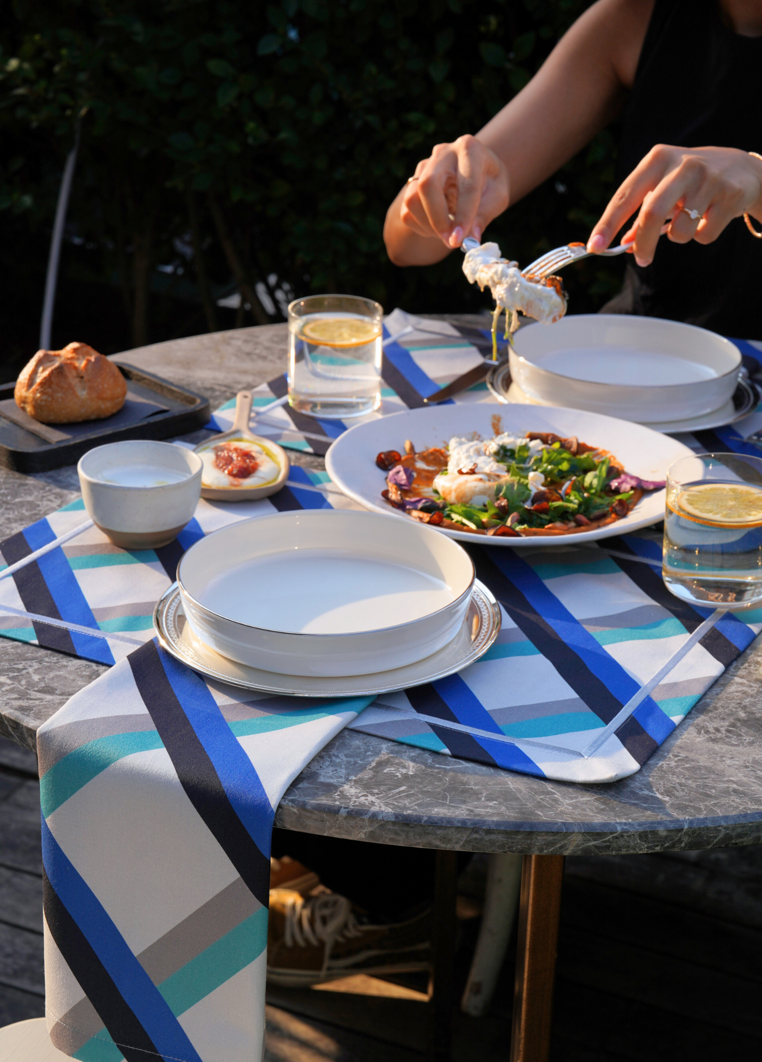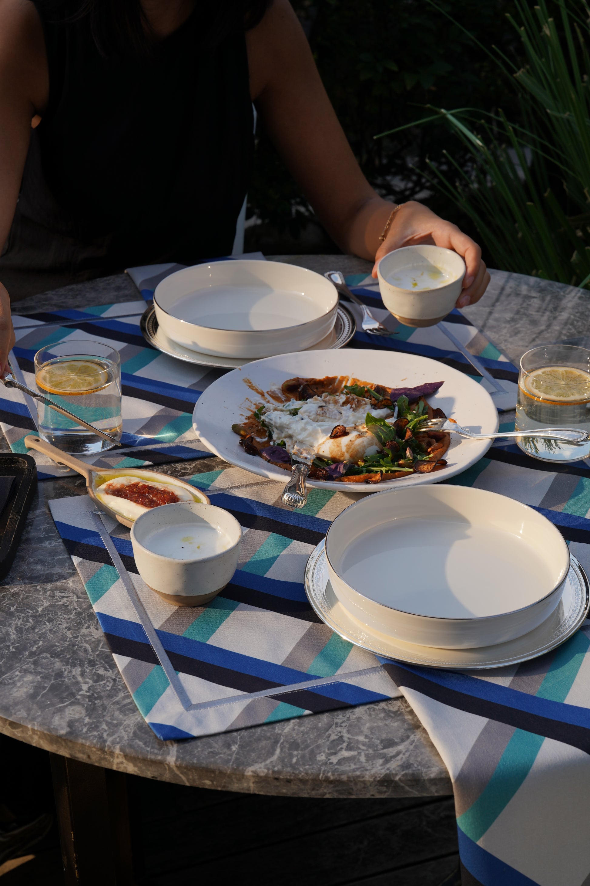 Servis altlıkları sade bir zarafeti çağrıştırıyor. Méja'nın zarafetini deneyimlemek için servis altlıklarını peçetelerle eşleştirebilirsiniz.